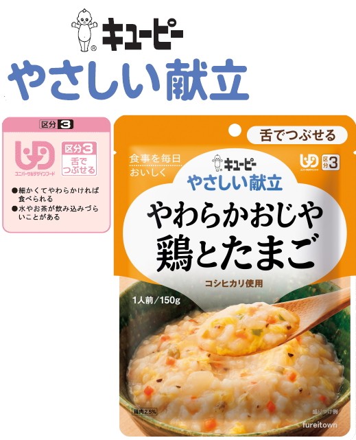 介護食 キューピー やわらかおじや 鶏とたまご 150g やさしい献立 鶏肉と卵の和風おじやです。 コシヒカリ使用 区分3 舌でつぶせる
