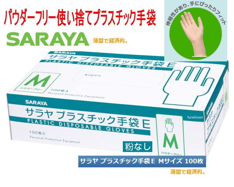 サラヤ プラスチック手袋E(粉なし)100枚入り