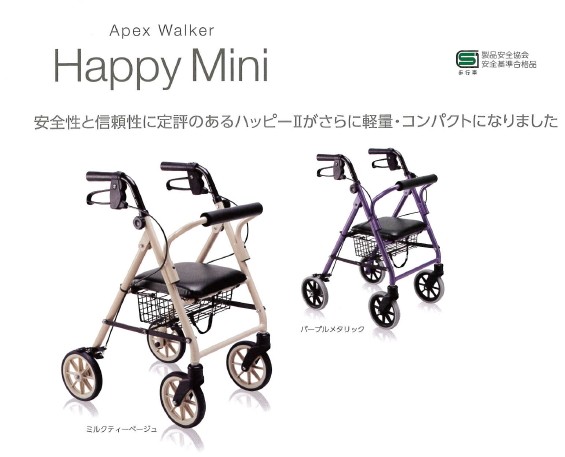 ▼W1300 竹虎ヒューマンケア ハッピー ミニ カラー:117003パープルメタリック 117002:ミルクティベージュ4輪歩行車 軽量 コンパクト折りたたみ式