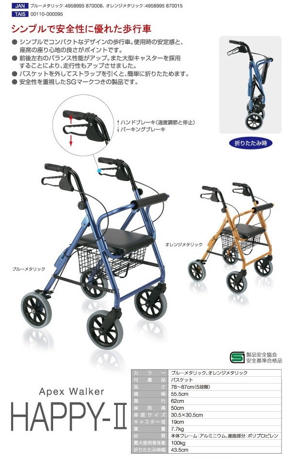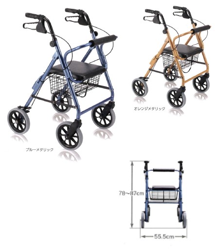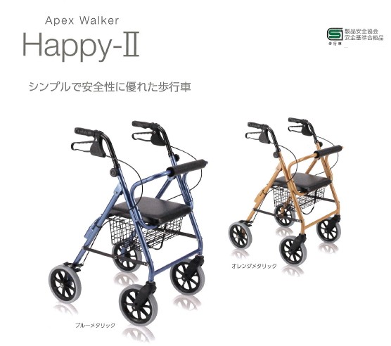 真レ▼W1960 ハッピー 2 NB カラー:117005:ブルーメタリック 117006:オレンジメタリック 高さ:78〜87cm4輪歩行車大型キャスター 竹虎ヒューマンケア