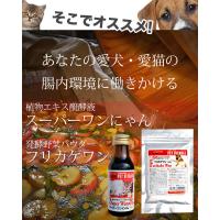 | 商品のお問い合わせ | 0142-21-4161 9:00〜18:00 (土・日・祝日不定休) ※ 犬用商品です。 ※ ストラバイト結石(アルカリ性尿石症)の治療をしているワンちゃんには「スーパーワンにゃん」の方をおすすめします。 ※ 当商品は北海道産てんさいを原料とする上白糖の浸透圧を使って製造しています。「上白糖は健康に有害ではないか」という誤情報があるようですが、いずれにせよ当製品においては、砂糖(ショ糖=二糖類)は発酵段階で他の植物(主に炭水化物)とともに「ブドウ糖」や「オリゴ糖」などに変わってしまっており、エネルギー源や微生物のエサなどに即利用される栄養素です。 ※ 完全無添加(本製品は狂牛病に関係する動物性原料や、薬剤・薬物類、保存料・添加物類、添加酵素類は一切使用しておりません。) ※ タマネギ・アサツキなどの溶血成分(アリルプロピルジスルフィド)は発酵過程で完全に分解されています(公的認証検査機関検証済み)ので安心してお与え下さい。 ※ 黒い粒状のものは原液が飴状に固まったもので、甘くてお湯で溶ける性質のものです。工程上、小石や砂粒が混入することはありませんので安心してお与え下さい。 ※ 調整剤として使用される北海道産ビートパルプは甜菜大根のしぼりかすで、良質の繊維質を持ち、北海道酪農では欠かせない安全で有効な飼料としても使用されている原料です。 ※ 乾燥剤[シリカゲル]入り(ペットには与えないようにご注意下さい) ※ 原料の一部である細い硬めの茎類が混ざることがございますが、小型犬などで気になる場合は取り除いてあげてください。 |