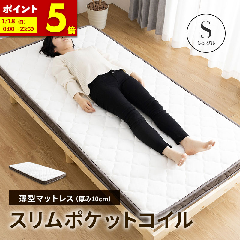 マットレス シングル ポケットコイル マットレス ポケットコイルマットレス ロール梱包 薄型 厚み10cm