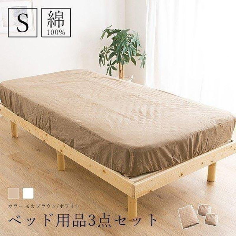 シーツ 敷きパッド 3点セット シングル 綿100% ベッドパット1枚 ボックスシーツ2枚 ウォッシャブル コットン敷パッド ベッド用シーツ 洗える