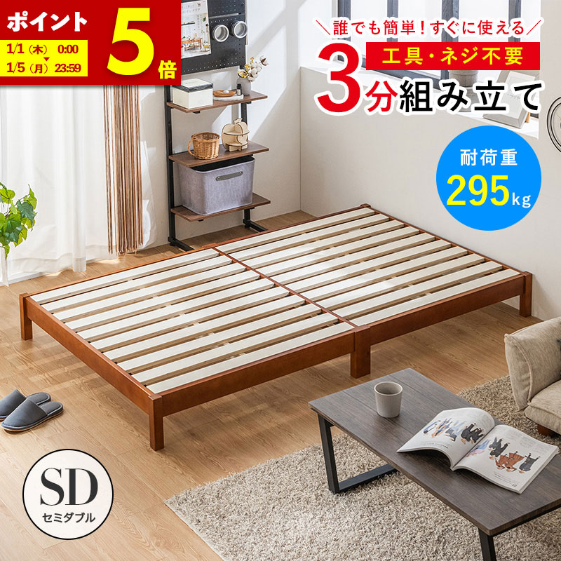 すのこベッド ベッド 工具不要 組み立て 簡単 ネジなし ネジ不要 頑丈 セミダブル パイン材 x ベッドフレーム ベット 天然木 おしゃれ