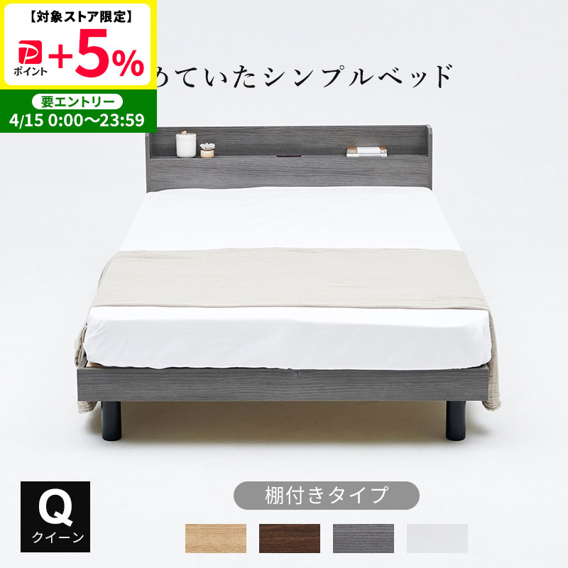 クイーンベッド フレーム すのこ ベッド すのこベッド クイーンサイズ セミシングル2台 セット 分割 ベッドフレーム コンセント付 木製 おしゃれ 頑丈 棚 棚付き
