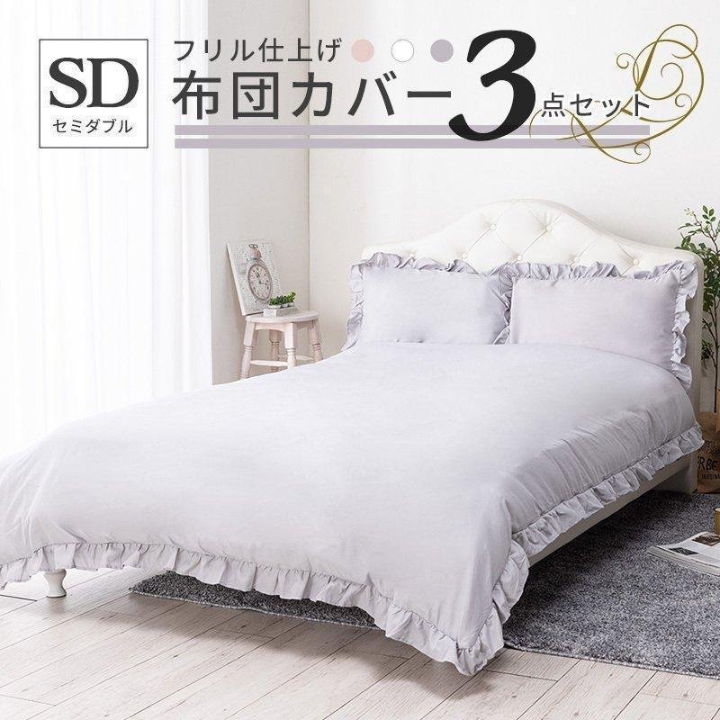 寝具 3点セット セミダブル フリル おしゃれ ピーチスキン オールシーズン 布団カバーセット 新生活 フリル仕上げ