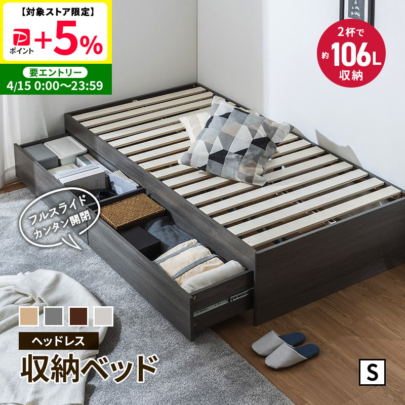 大容量 ヘッドレス ヘッドレスベッド 収納ベッド シングル チェストベッド 収納付き 引き出し付き 2杯ベッド すのこベッド 容量最大約106L