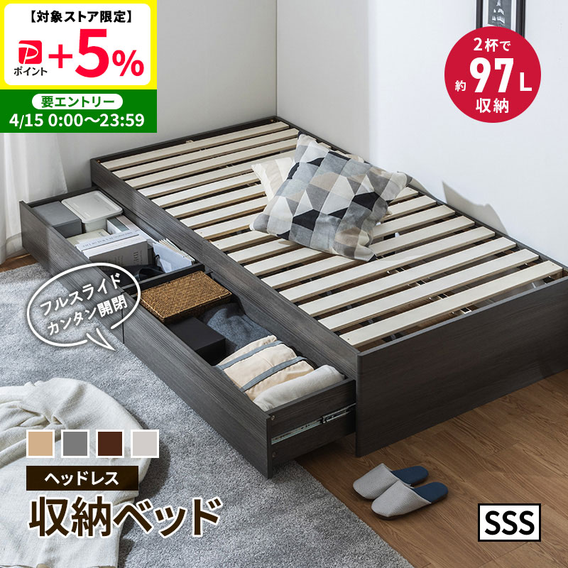 収納ベッド 大容量 ベッド ヘッドレス すのこベッド ヘッドレス セミシングルショート ベッドフレーム チェストベッド 収納付き 引き出し付き 2杯ベッド 約97L