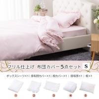 寝具 5点セット シングル フリル ボックスシーツ おしゃれ ピーチスキン 布団カバーセット 新生活 Sサイズ かわいい 姫 姫系