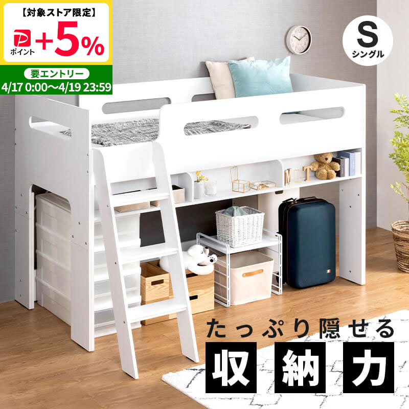 ロフトベッド ミドルベッド ベッドフレーム シングル シングルベッド 高さ137.4cm 収納 収納付き ベッド下収納 木製 子供部屋 おしゃれ