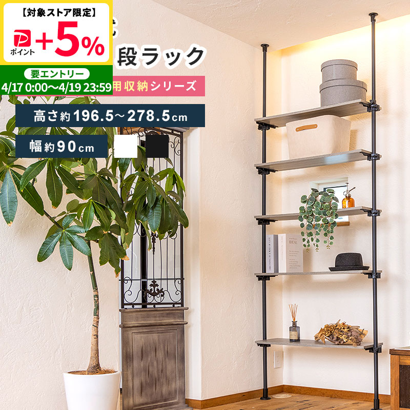 つっぱり オープンラック 棚 収納 ラック 5段 木製 90cm つっぱり棚 収納ラック つっぱり収納 収納棚 リビング デスク つっぱり棒 伸縮 高さ調節 おしゃれ