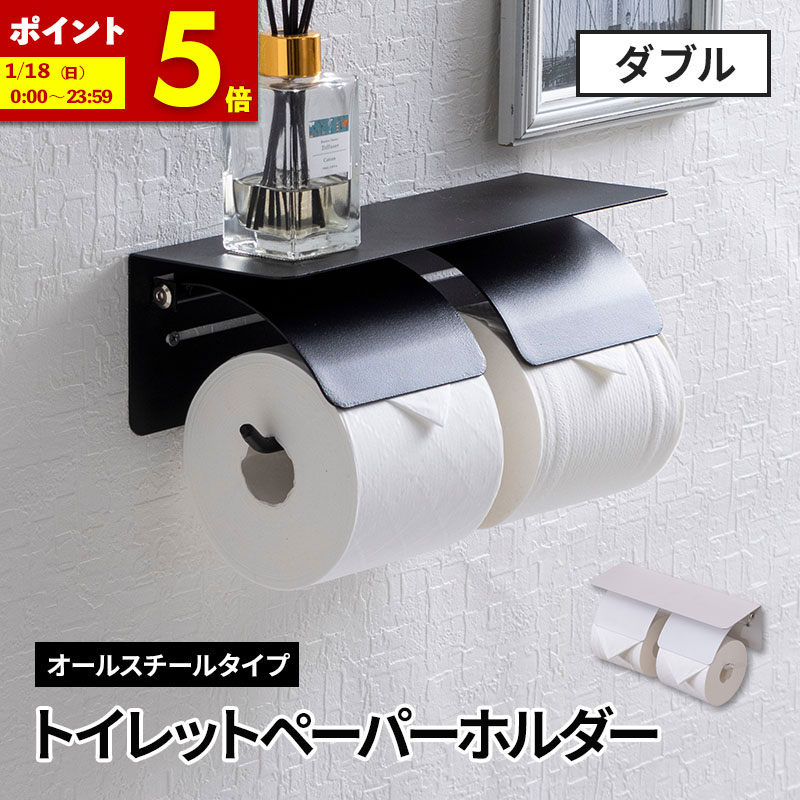 トイレットペーパーホルダー 2連 アイアン おしゃれ 棚 ダブル 紙巻き器 カバー スチール オールスチール かっこいい トイレットペーパー シンプル 二連