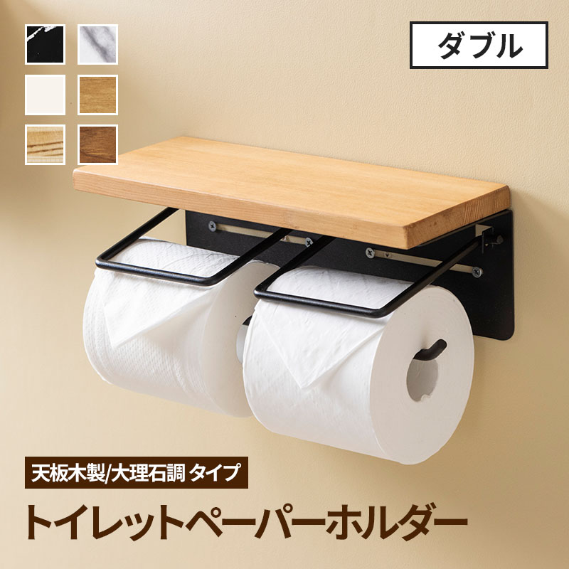 トイレットペーパーホルダー 2連 おしゃれ 棚 カバー ダブル アンティーク トイレ 大理石柄 天然木 ペーパーホルダー 紙巻き器 トイレ用品 お手洗い