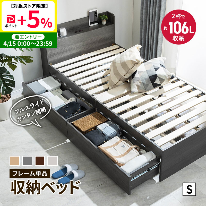 すのこベッド シングル ベッドフレーム 収納 収納付き 収納ベッド ベッド下 引き出し 引き出し付 チェストベッド 宮付き 宮棚付き 大容量 コンセント付き