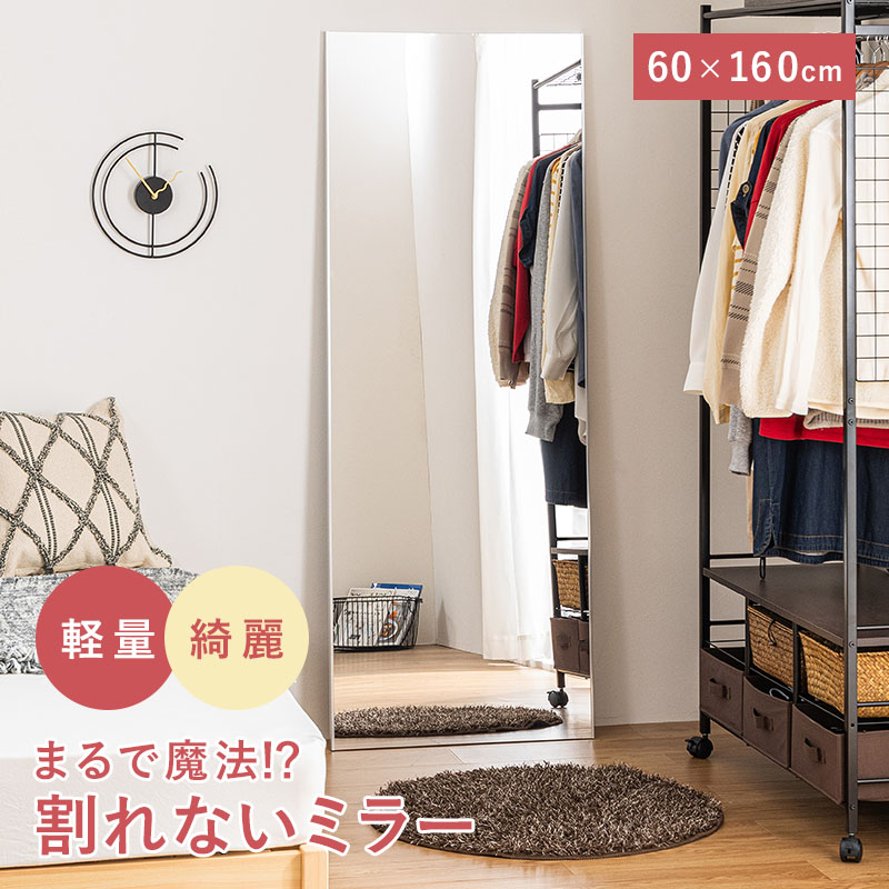 割れない鏡 60×160cm 壁掛け 割れないミラー フィルムミラー フィルム ミラー 姿鏡 軽量 持ち運び 立てかけ 全身鏡 玄関 全身 姿見 寝室 リビング
