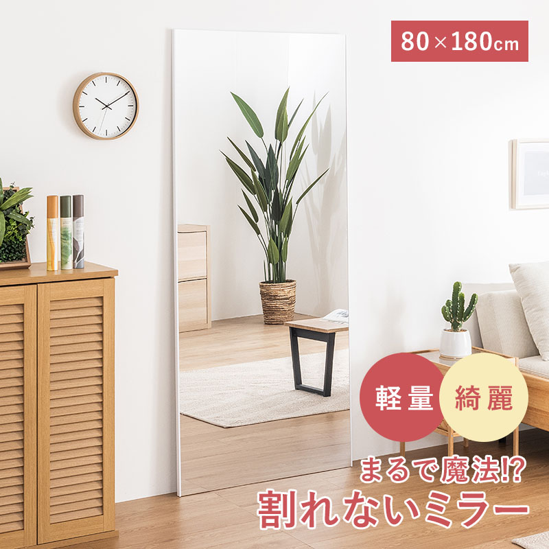 割れない鏡 80×180cm 壁掛け 割れないミラー フィルムミラー フィルム ミラー 姿鏡 軽量 持ち運び 立てかけ 全身鏡 玄関 全身 姿見 寝室 リビング