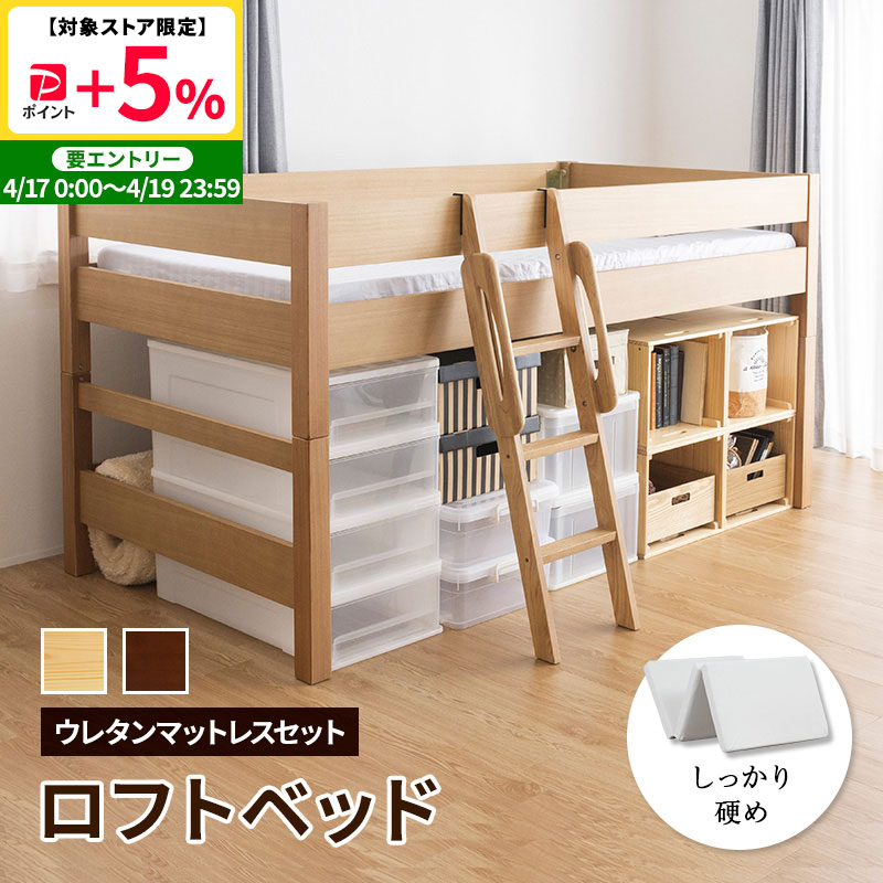 ベッド 木製ミドルベッド 天然木を贅沢に使用 システム家具 すのこベッド ウレタンマットレス付き