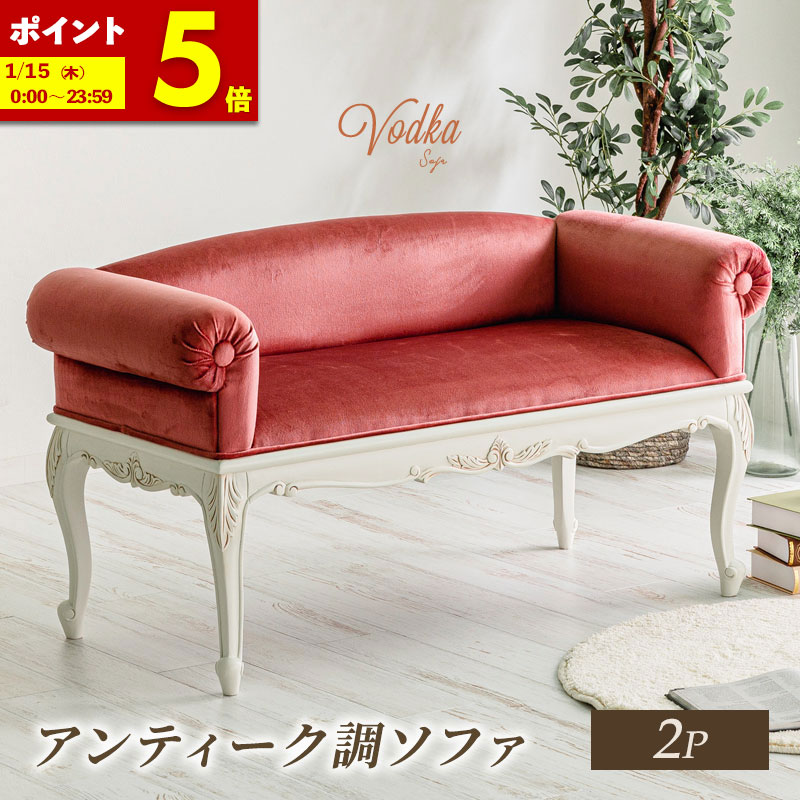 アンティーク調ソファ 猫脚プリンセスシリーズ 2人掛けソファ 2Pソファ 赤 ベルベット レッド 椅子 ホワイトウッド アイボリー エレガント