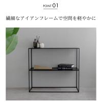 2段タイプの収納棚は、書籍やアートオブジェ、観葉植物などを美しくディスプレイしながら、実用的な収納スペースとしても活躍。