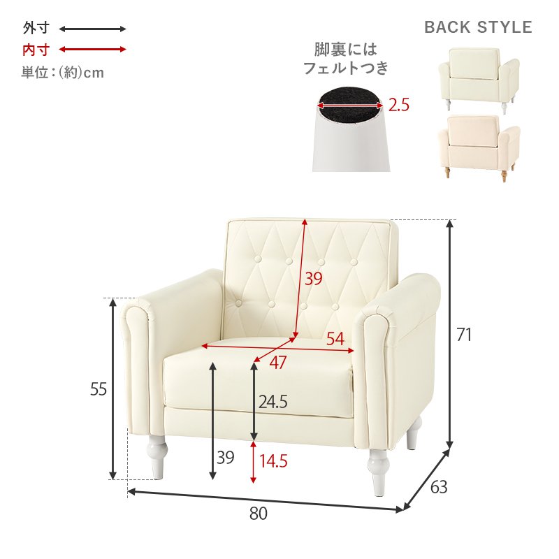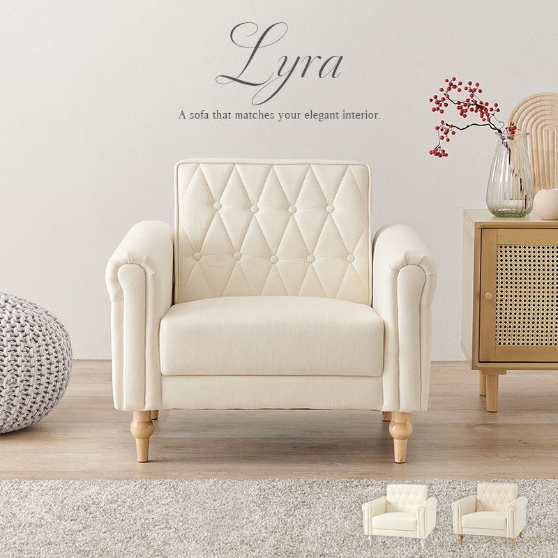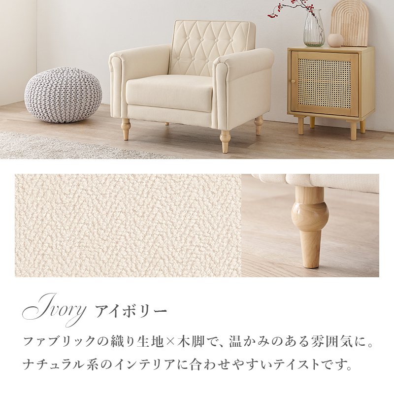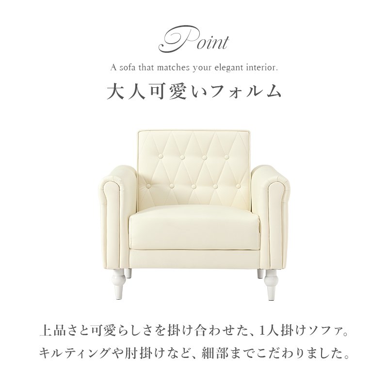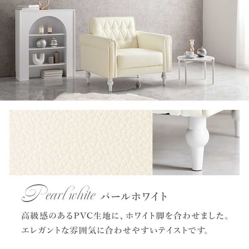 エレガント 幅80cm 一人掛け 大人かわいい 一人用 パールホワイト アイボリー ソファー 1人掛けソファー 1人用