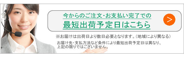 | ※メーカー出荷からお届けまで出荷日より7〜14日程度必要となります。※地域や時期により14日以上必要となる場合がございます ※平日17時以降と日祝の配送不可 |