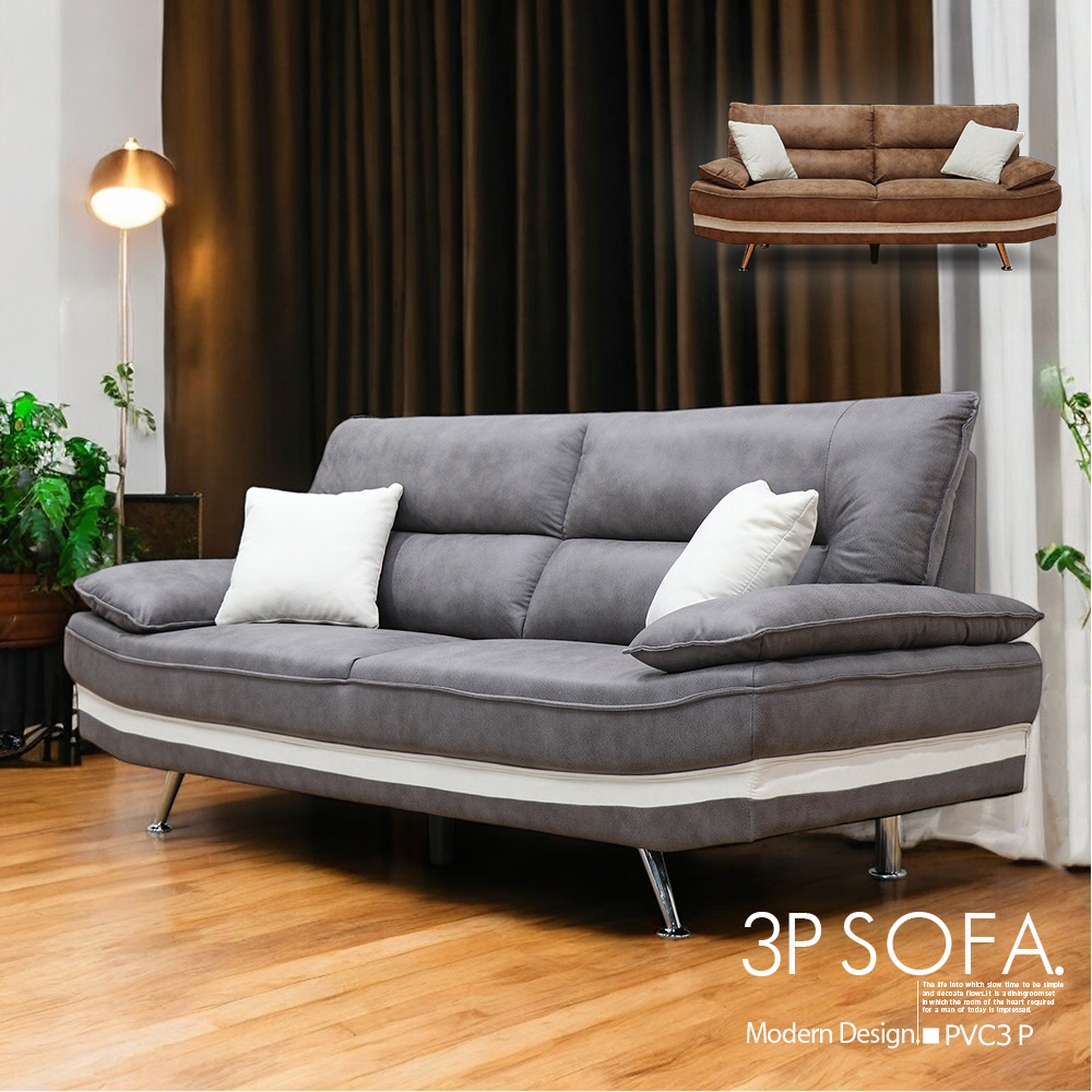 ソファ ソファー 3人掛け 幅193cm 新素材のソフトレザー グレー ブラウン モダン 大きい高級感 クッション付き 肘付き デザイン 3149