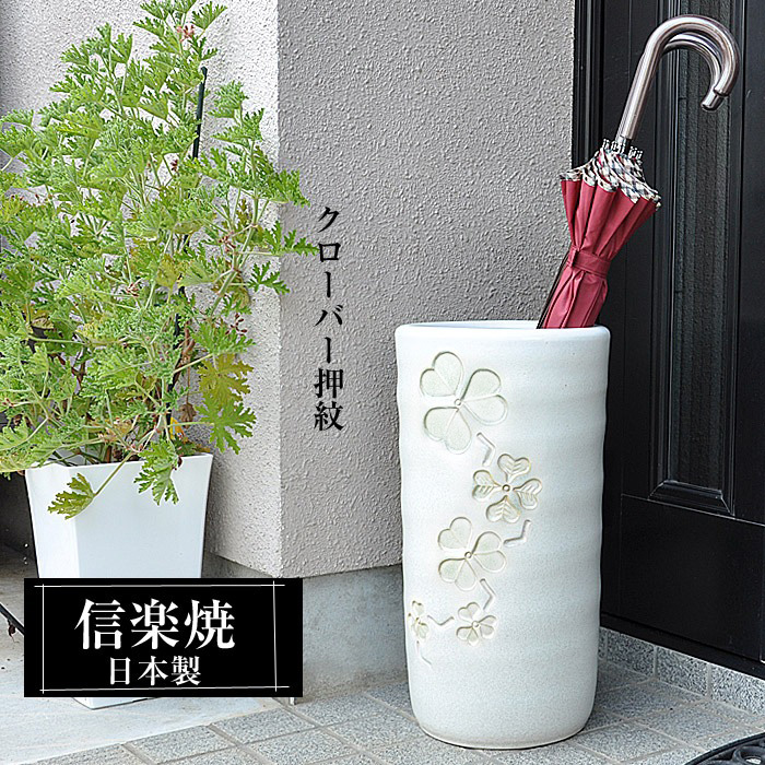 信楽焼 傘立て 陶器 日本製 白 ホワイト おしゃれ 和 和風 モダン 倒れにくい 錆びない 高級 外置き 屋外 野外 信楽焼き クローバー