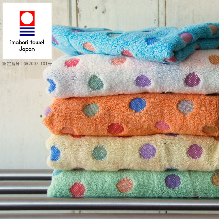 とにかくふわっふわ!とにかくやわらか! タオルの域を超えた包まれたくなるやさしい風合いにポップなドット柄のタオルは、やさしさいっぱい、元気100倍、そんなタオルシリーズ。 十分すぎる厚みに無撚糸のふわふわやさらかな肌触りで、タオルとしての吸水性・拭き心地は抜群です。 また、カラフルなドット柄は25色もの色数で、タオルいちめんに弾ける水玉模様もこのタオルシリーズの人気の一つ。 お風呂上がりは、このやさしい肌触りがたまらない。 しっかり厚みがある吸水性抜群のタオルは、キッチンや洗面所など1日に何度も使用するタオル場所でも大活躍! 使うたびに笑顔になる、使うみんなが笑顔になる… 笑顔が溢れる毎日を、今治タオル・ポップカラーと一緒に過ごしてみませんか?