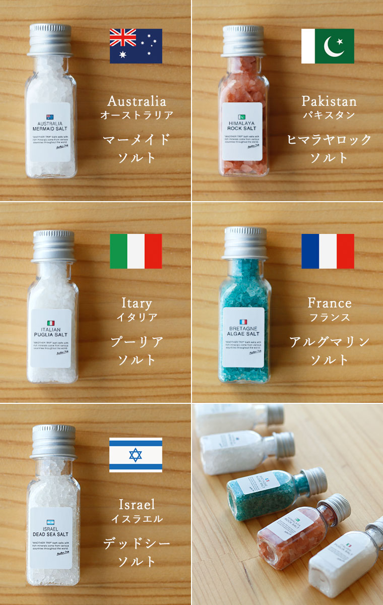| 広告文責:バスリエ株式会社 TEL:04-7183-3252 商品区分:化粧品 製造販売元:株式会社ジーピークリエイツ 原産国:オーストラリアメーメイドソルト:オーストラリア、ヒマラヤロックソルト:パキスタン、イタリアンプーリアソルト:イタリア、アルグマリンソルト:フランス、デッドシーソルト:イスラエル |