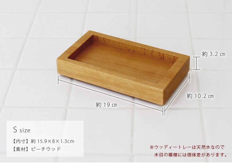 外寸:約19×10.2×高さ3.2cm 内寸:約15.9×8×1.3cm 素材:ビーチウッド |