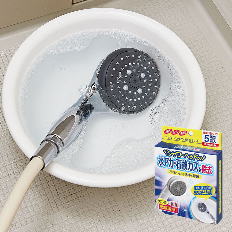 | シャワーヘッドに溜まった汚れを元から洗浄&除菌。 つけて置くだけカンタン洗浄!クエン酸+乳酸徹底洗浄! お風呂やキッチン、洗面台など様々な場所のシャワーヘッドに。 1回使い切りタイプ15g5袋入(洗浄5回分) ※ご利用のモニター環境により色味に差異が生じる場合がございます。 |