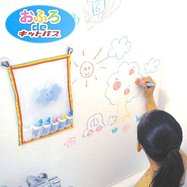 | お風呂クレヨン/おふろdeキットパス・6色+ネットセット(クレヨン6色(赤・緑・青・ピンク・黄・紫)、スポンジ、ネット、吸盤) |