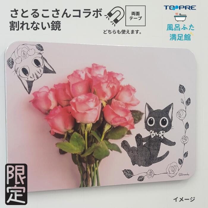 コラボ商品 猫作家 さとるこさん 描き下ろし イラスト 割れない ミラー SK-10 215 x 145 x 5mm 限定販売 防災
