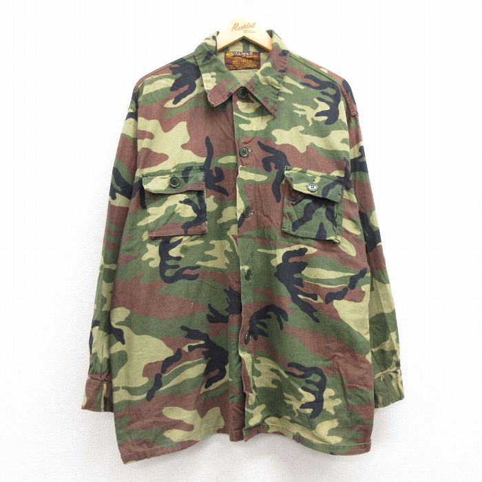 【50%OFF】XL/古着 長袖 ハンティング ジャケット メンズ 80s ウッドランドカモ 大きいサイズ コットン 緑他 グリーン 迷彩 25feb25 中 5OF