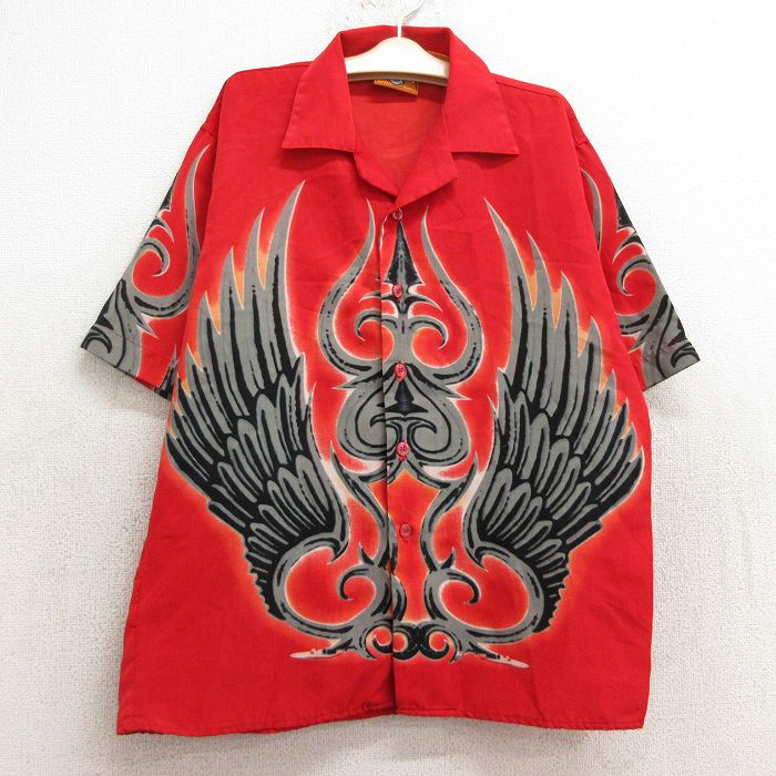 【商品名】 古着 半袖 シャツ キッズ ボーイズ 子供服 羽 開襟 オープンカラー 赤