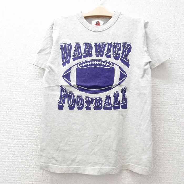【50%OFF】古着 半袖 ビンテージ Tシャツ キッズ ボーイズ 子供服 00s ワーウィック フットボール コットン クルーネック 薄グレー 霜 5OF