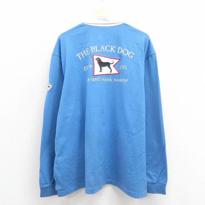 XL/古着 長袖 ラガー シャツ メンズ The Black Dog 刺繍 大きいサイズ コットン 水色 25oct29 中古 トップス