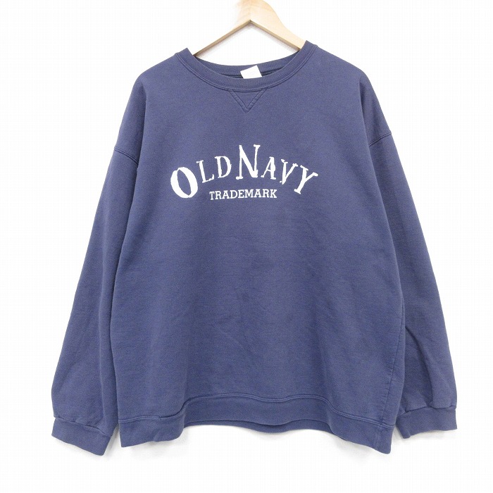 【20%OFF】XL/古着 オールドネイビー 長袖 スウェット メンズ 90年代 90s ビッグロゴ 大きいサイズ クルーネック USA製 紺 25dec13 2OF