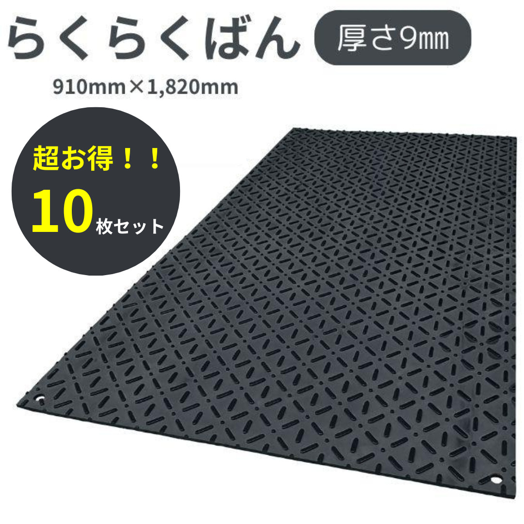 敷板 プラスチック 樹脂 軽い らくらくばん 10枚セット 京葉興業 農業専用 910mm×1,820mm 樹脂製敷板 厚さ9mm 軽量敷板 養生板 プラシキ でこぼこ プラ 駐車場