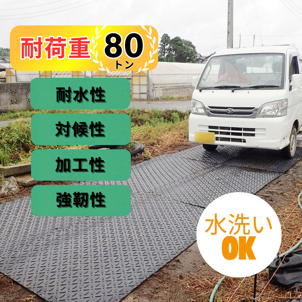 車両総重量80tにも耐え、割れ難い強靭性があります。屋外で10年以上の使用実績があり、水洗いも可能。
