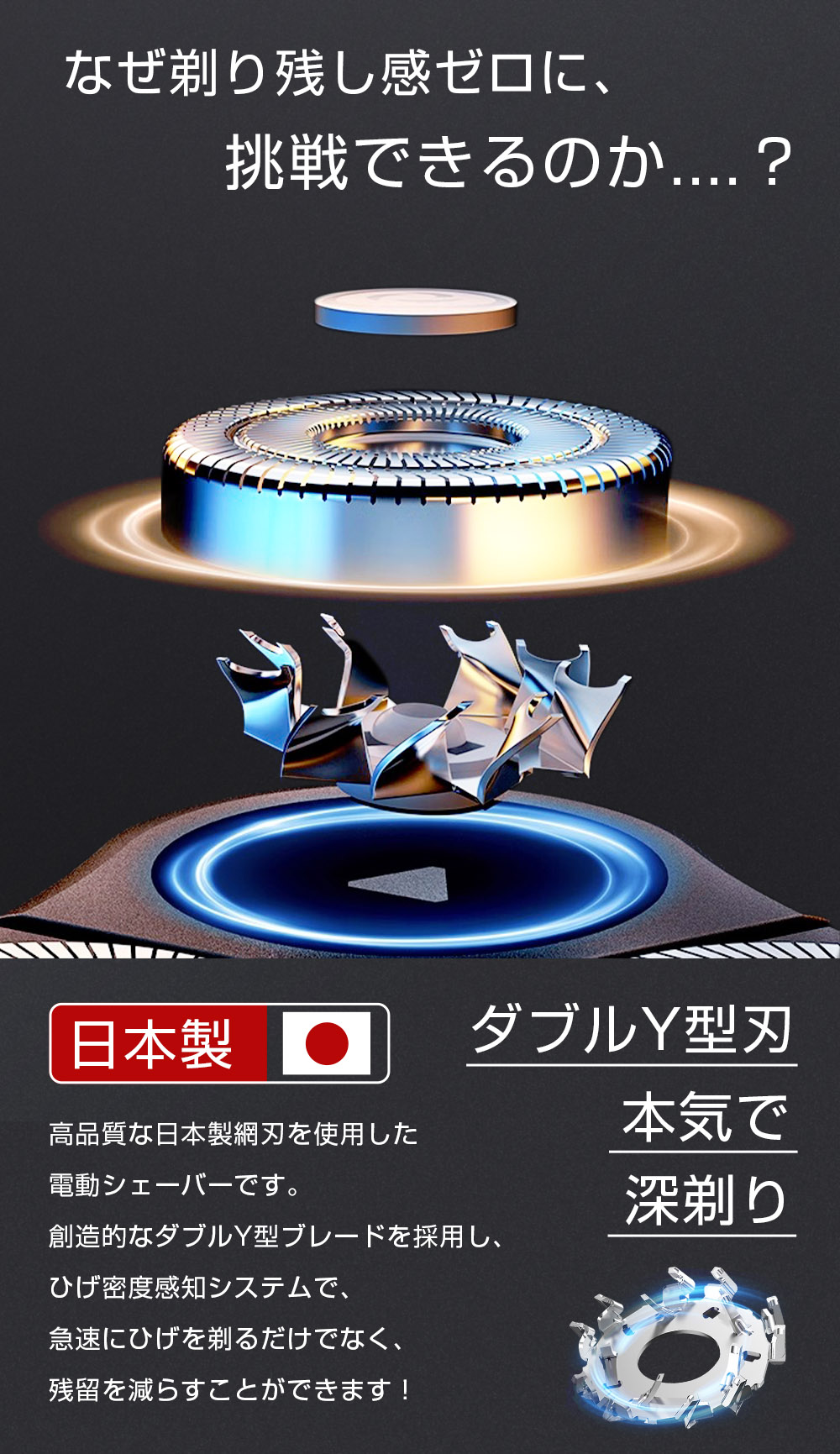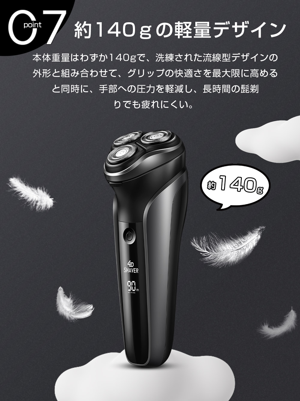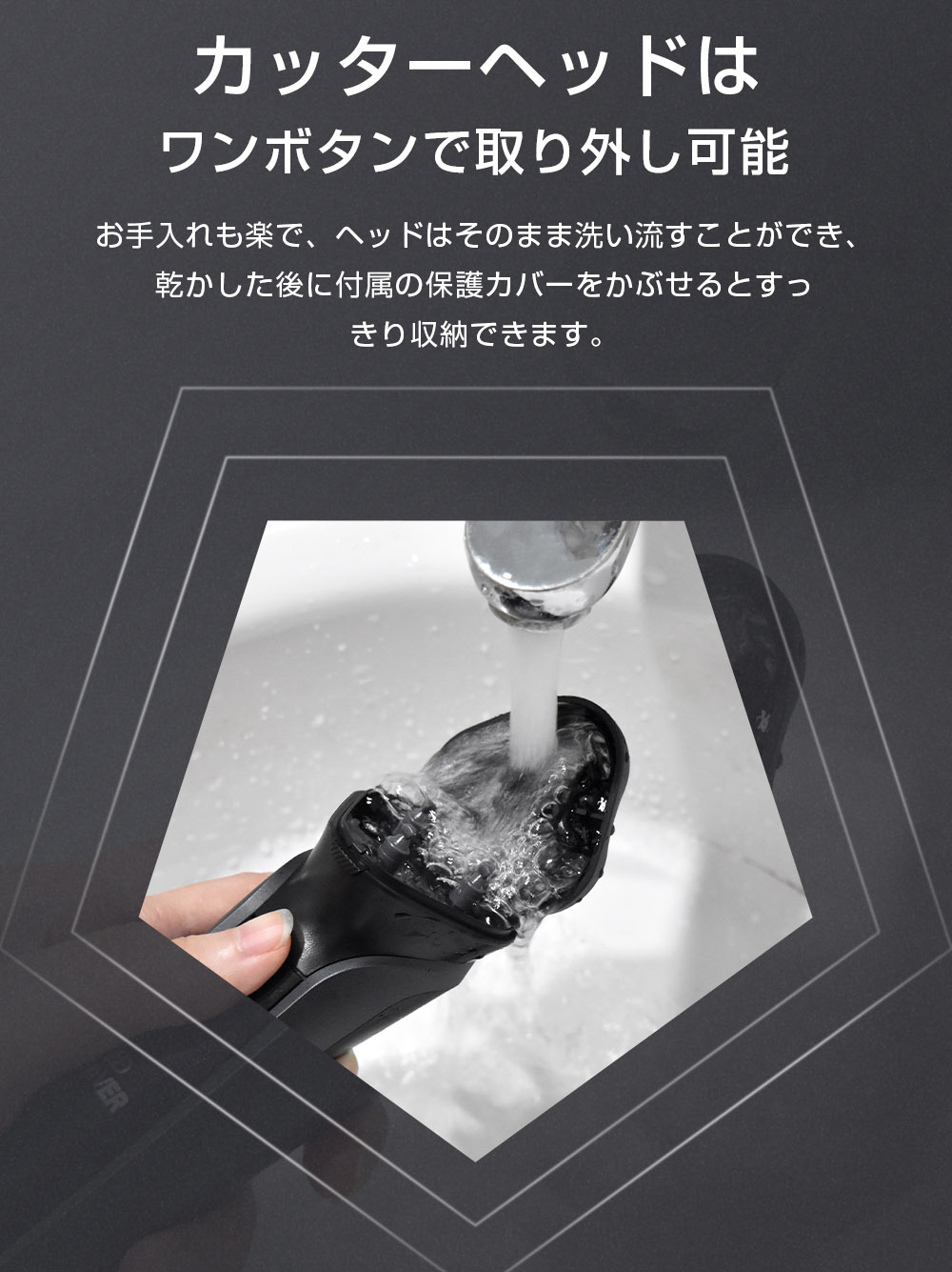 【全身防水設計】完全防水設計なので、快適なドライ剃りはもちろん、ジェルや泡剃りにも対応、肌への負担を軽減しながら使用できます。