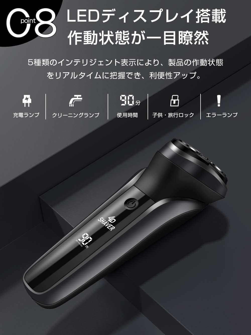 電動シェーバー メンズシェーバー 髭剃り ひげそり 回転式 充電式 トリマー搭載 乾湿両用 旅行 持ち運び便利