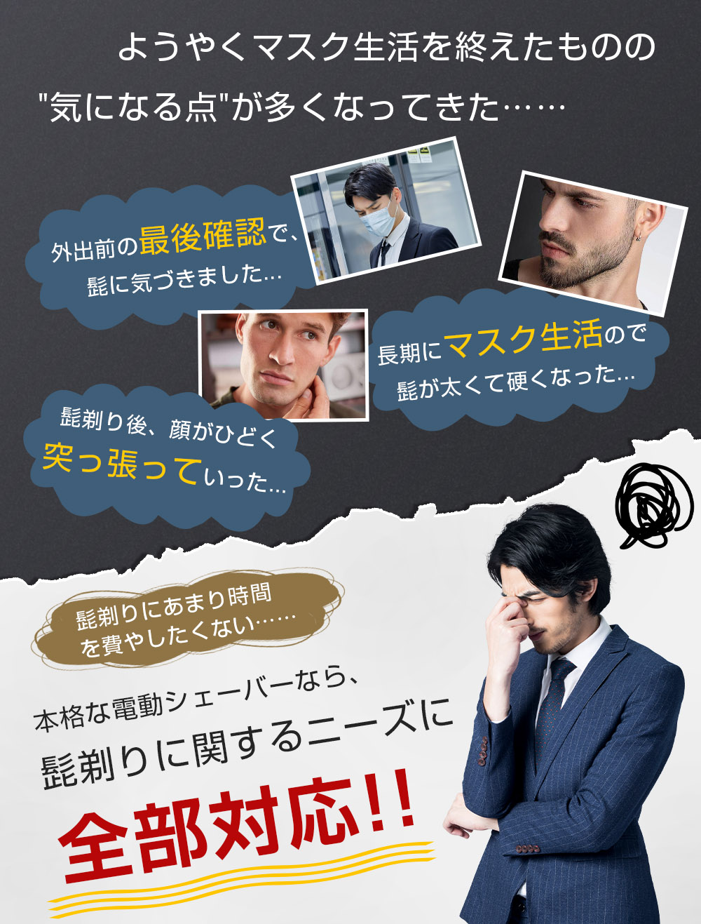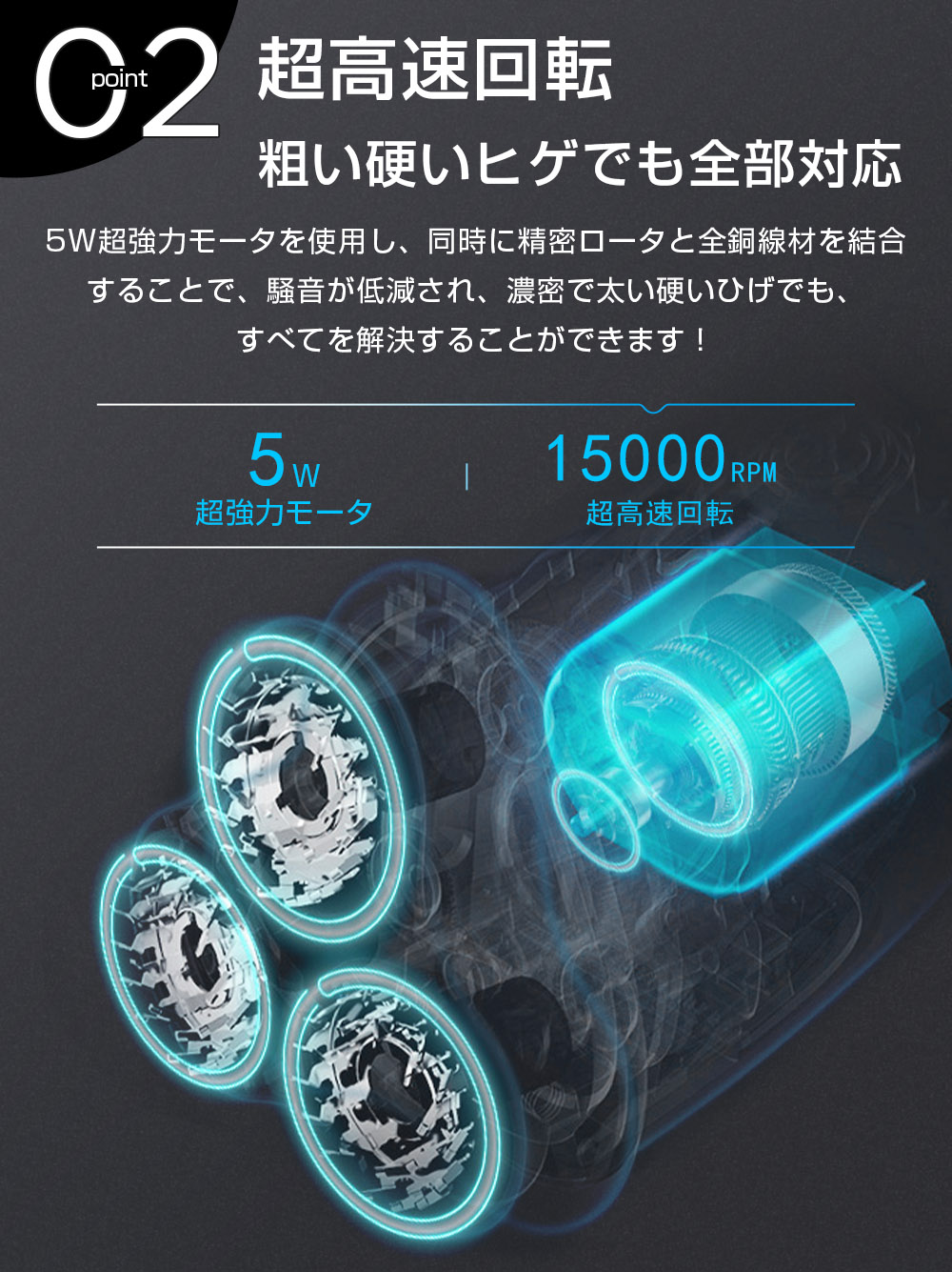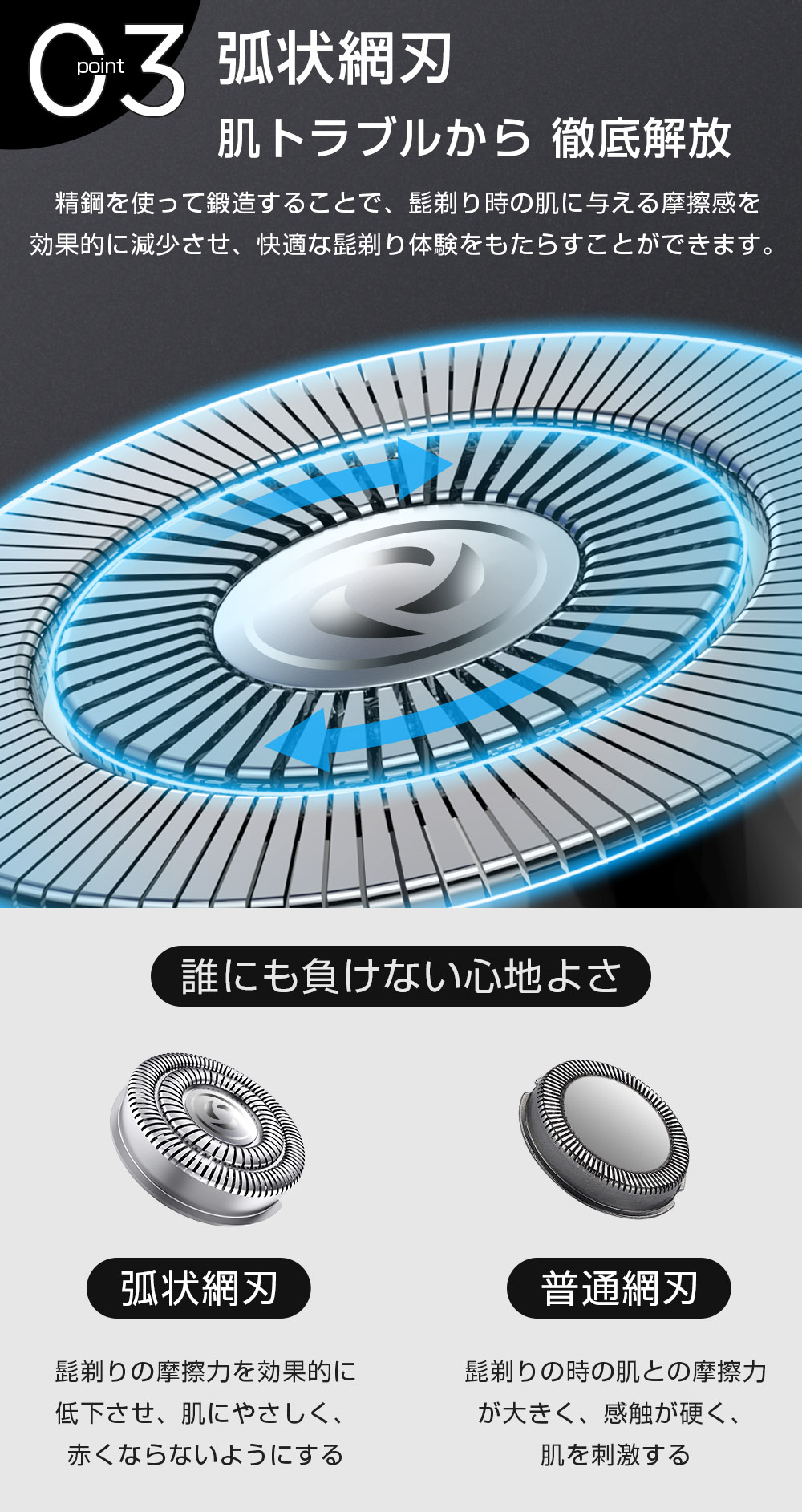 【剃り残しゼロ】独立して3つのフローティングヘッドは、テクニックいらずで鼻下からあご下まで密着し、多様な顔型に適しており、成長方向が複雑なひげでも簡単に剃ることができます.