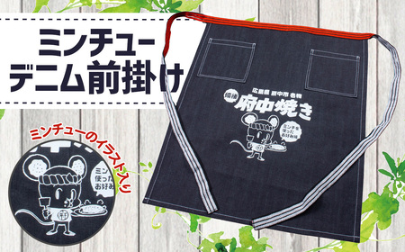 府中焼きを愛して数十年、地元自慢の食べ物です。高度成長期(1955年〜1975年)に生まれたと言われていますが、あるようでなかった地元応援グッズ、前掛けを府中焼きのマスコットキャラクター”ミンチュー”を入れて、ジーンズ企画工房らしくデニムで作りました。少しでも地元の食べ物の手助けになればと思います。