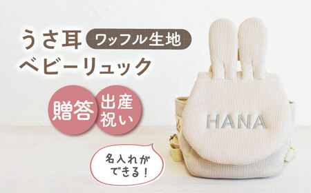 ふるさと納税 【ベージュ×シルバー刺繍】ベビーリュック うさ耳 ワッフル 一升餅にも〈名入れ可能!〉 [OCR047-06] 長崎県川棚町