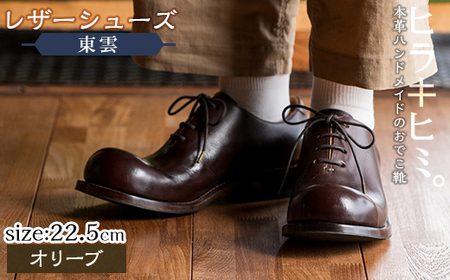 ふるさと納税 P3-006-B-225 本革ハンドメイドのレザーシューズ「おでこ靴(東雲)」(オリーブ・22.5cm)【ヒラキヒミ。】 霧島市 革靴 メンズ .. 鹿児島県霧島市