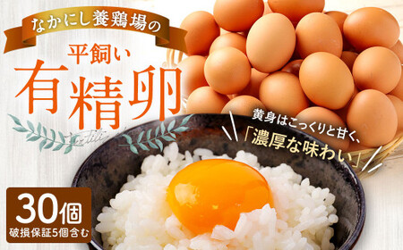 ふるさと納税 なかにし養鶏場の「平飼い有精卵」 30個 ※破損保証5個含む 福岡県北九州市