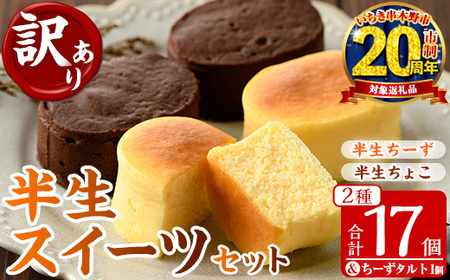 ふるさと納税 【家計応援】【訳あり!簡易包装】ご自宅用!半生ちーず 9個 と 半生ちょこ 8個 と チーズタルト 1個 計18個「ふわっふ.. 鹿児島県いちき串木野市