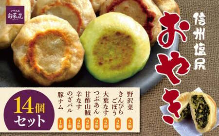 ふるさと納税 信州塩尻おやきセット 14個セット(旬菜花)| おやき セット ぎゅっと 詰め込み 野沢菜 きんぴらごぼう 大葉なす つぶあん 甘酢山.. 長野県塩尻市