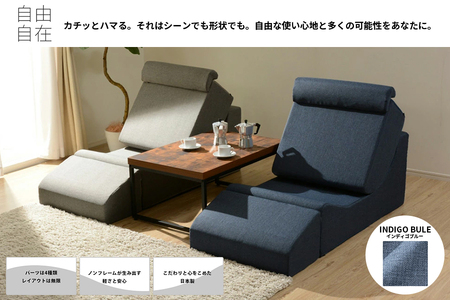 こちらの返礼品の色は【インディゴブルー】でございます。4種類のパーツを組み合わせて、自由自在にレイアウト。